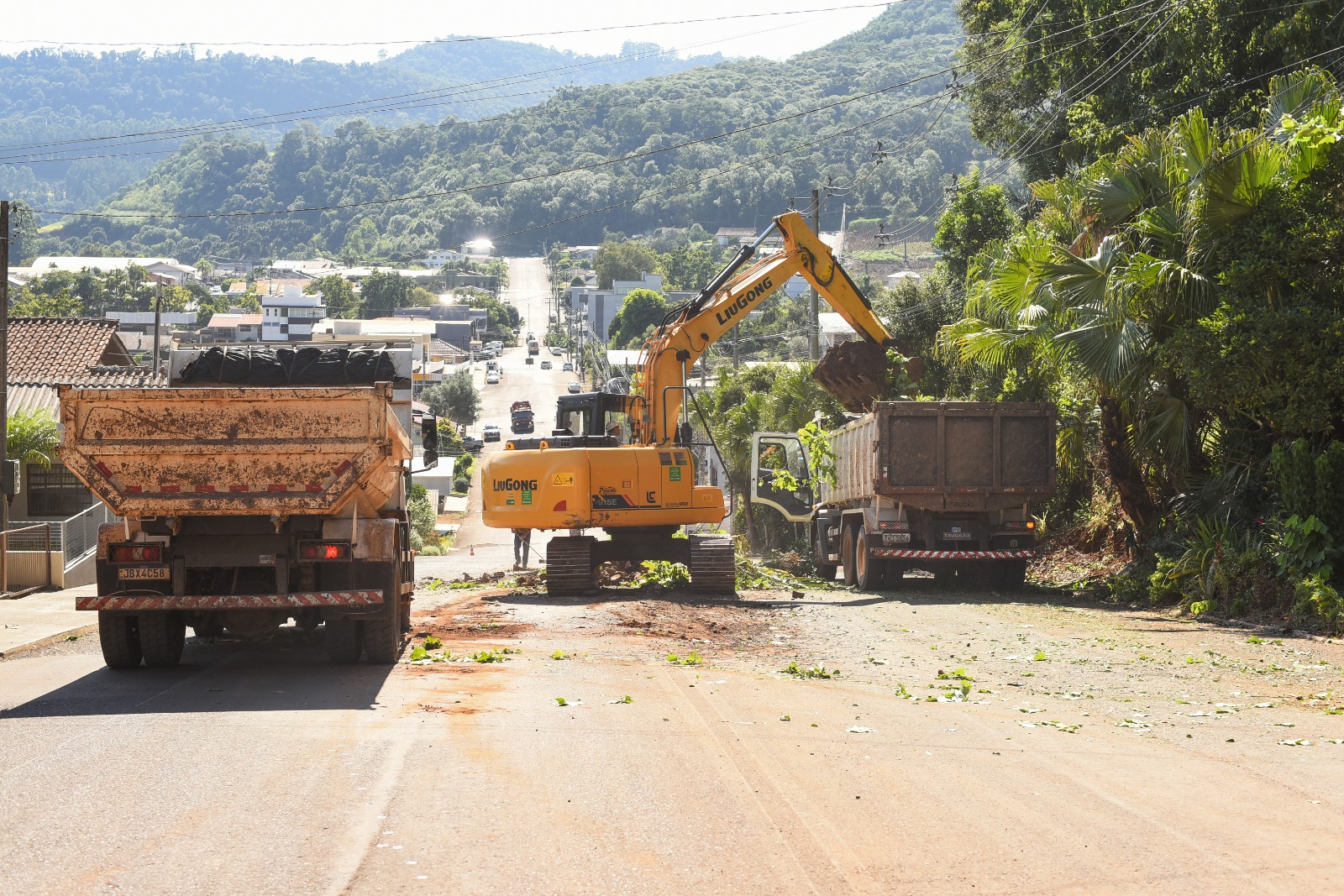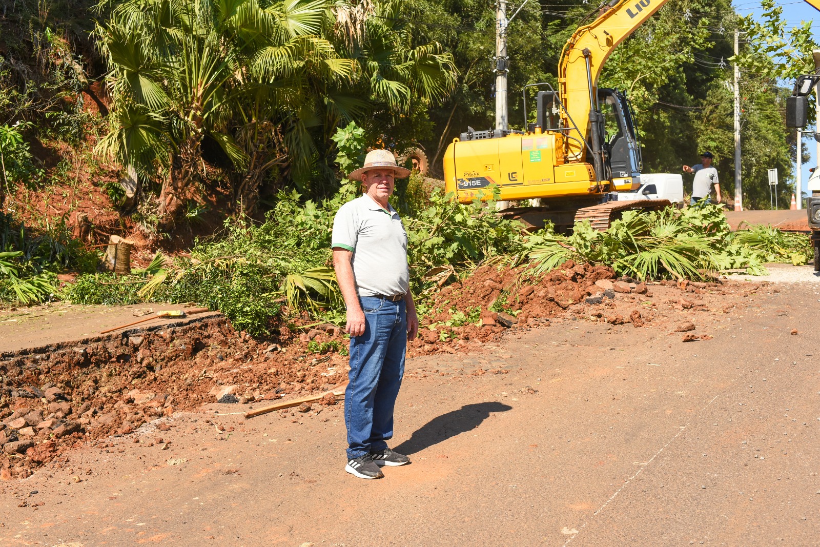 Em trecho da rua, parte do asfalto será removido para receber nova camada. O prefeito, Jair Kammler esteve no local para acompanhar o início dos trabalhos.