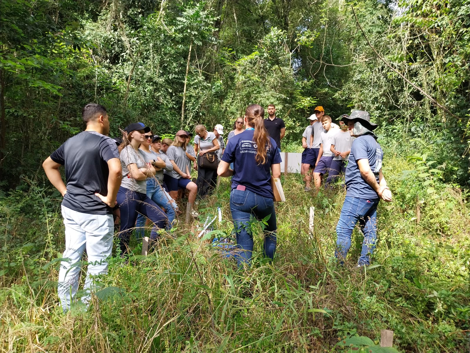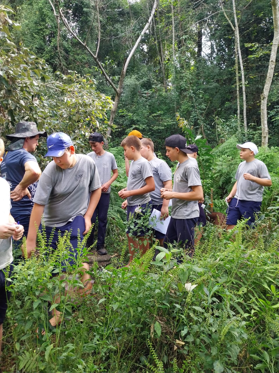 A atividade compreendeu a identificação das espécies com os nomes populares e classificação das mudas em pioneiras, secundárias e clímax (rápido crescimento e crescimento mais lento), acompanhamento do crescimento com a medição da altura, identificação presença da espécie exótica invasora (Uva do Japão) e combate de formigas.