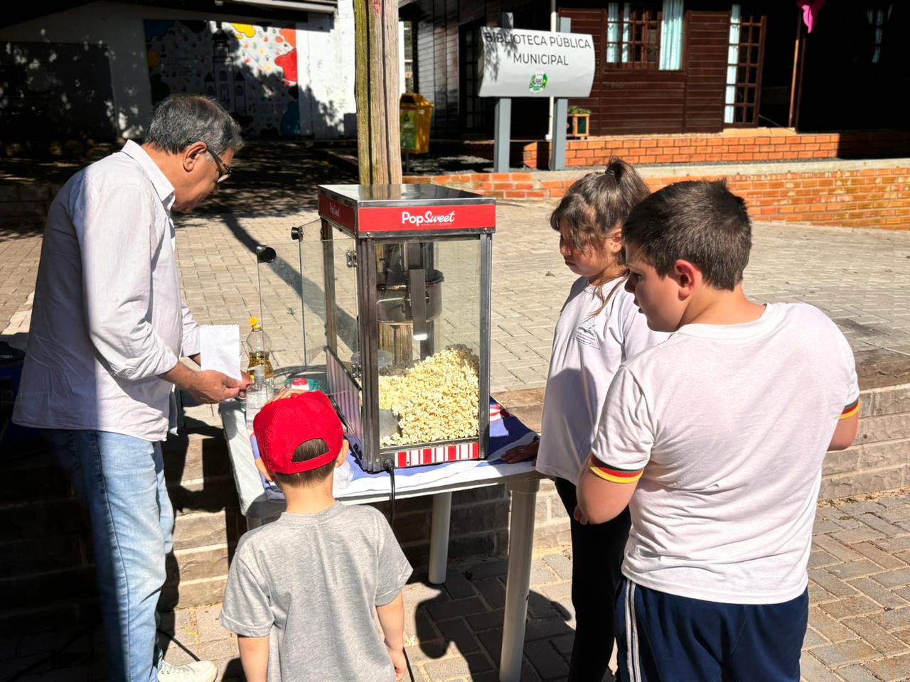 A atividade foi realizada na Praça 12 de Abril, onde foram disponibilizados brinquedos infláveis, além da distribuição de pipocas e sorvetes para as crianças.