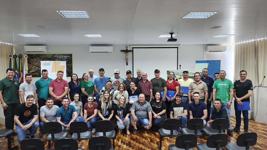 O prefeito, Jair Kammler, o vice, Leonel Dario Lanius Junior, o secretário de Desenvolvimento Econômico, Celito Bolzan, a gestora de projetos do Sebrae RS, Catia Regina Roy, os técnicos do Sebrae que ministraram os cursos, Cleber Renato Zortea (fruticultura) e Andreia Vicentin (produção de leite), a analista Sebrae RS, Tania Ines Gehlen, além dos produtores, representantes de cooperativas, empresas do setor e instituições bancárias, também marcaram presença no evento.
