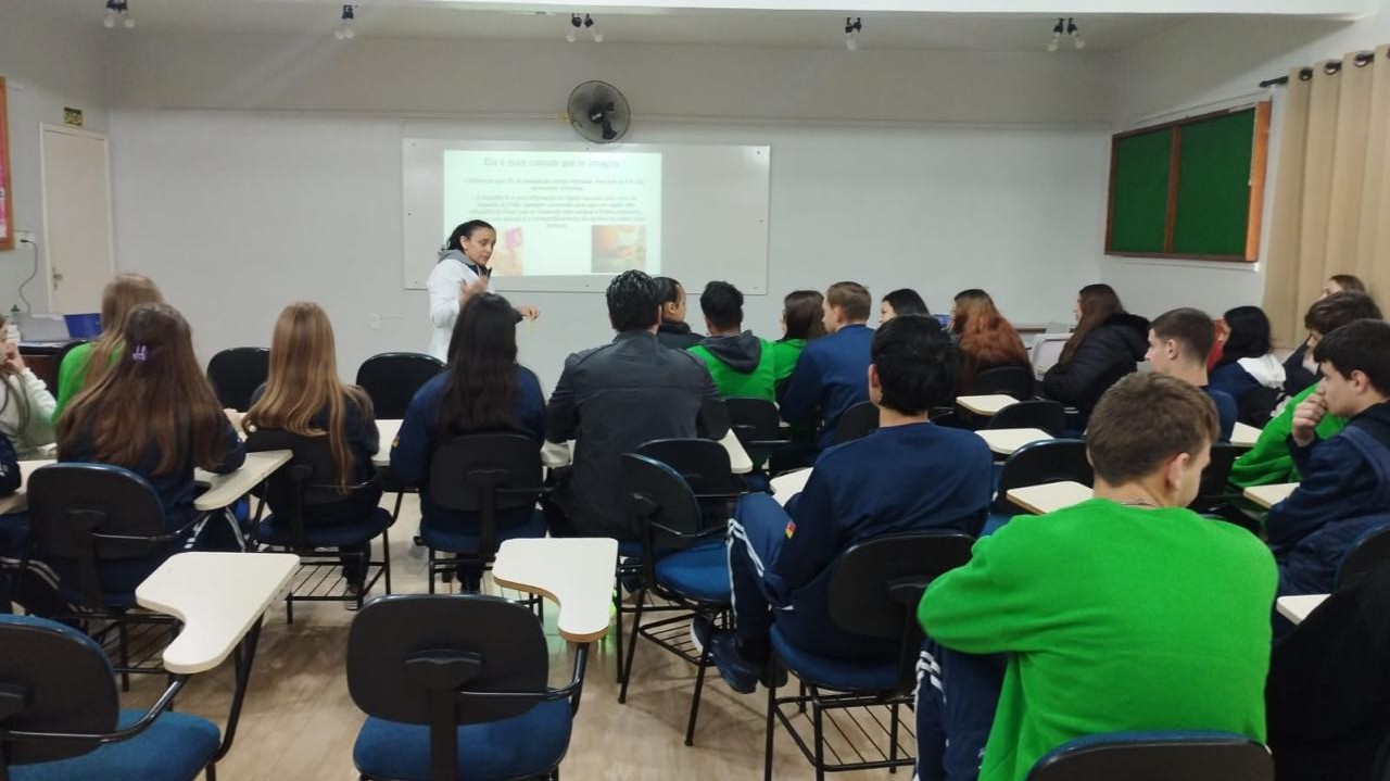Com o apoio da técnica de enfermagem Marlei Melania Andrioli, prepararam e apresentaram uma palestra no auditório da escola, no turno da manhã, para conscientizar os jovens sobre a doença.