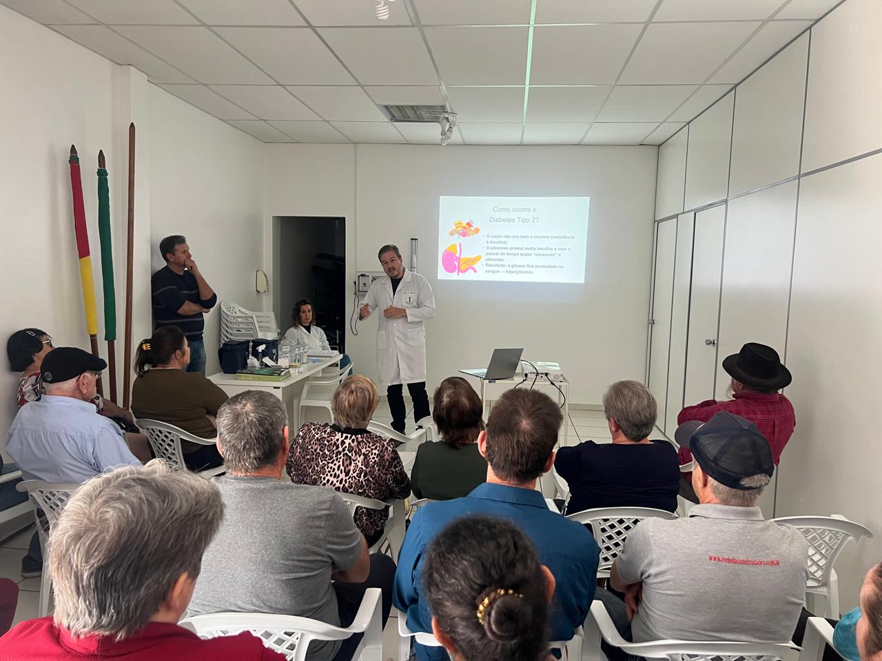 O médico Diogo Chiapetti destacou os cuidados que todos tem que ter em relação ao uso da insulina e de ações que impactam em uma melhor qualidade de vida, controlando o diabetes.