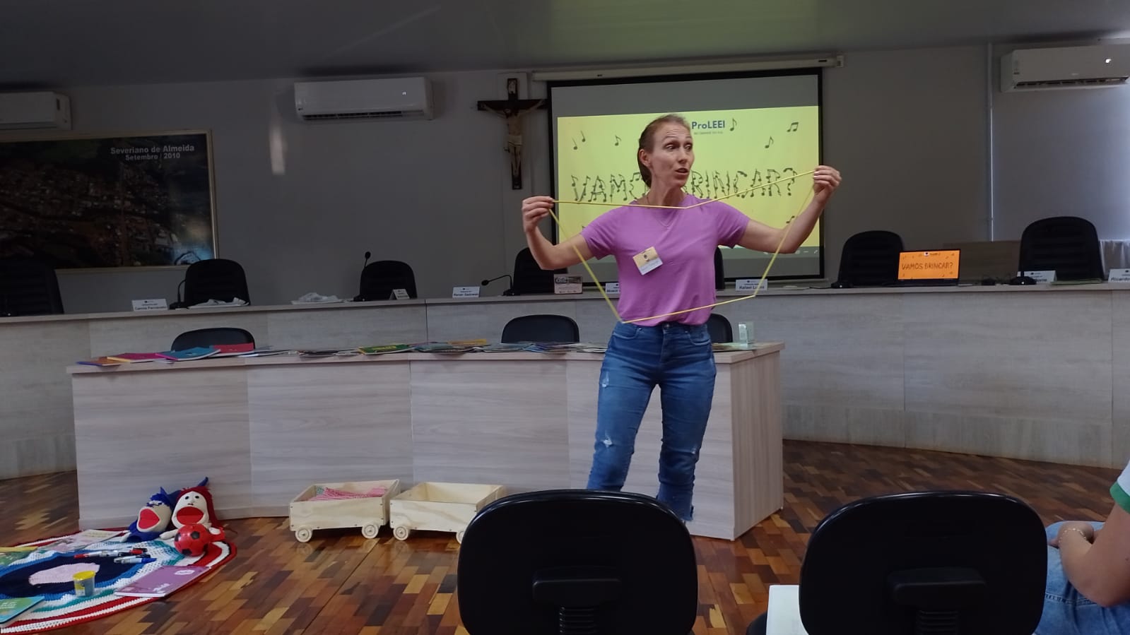 O objetivo foi discutir as propostas pedagógicas propostas pelo programa Leitura e Escrita na Educação Infantil (LEEI), legislação e diretrizes da Base Nacional Comum Curricular (BNCC).