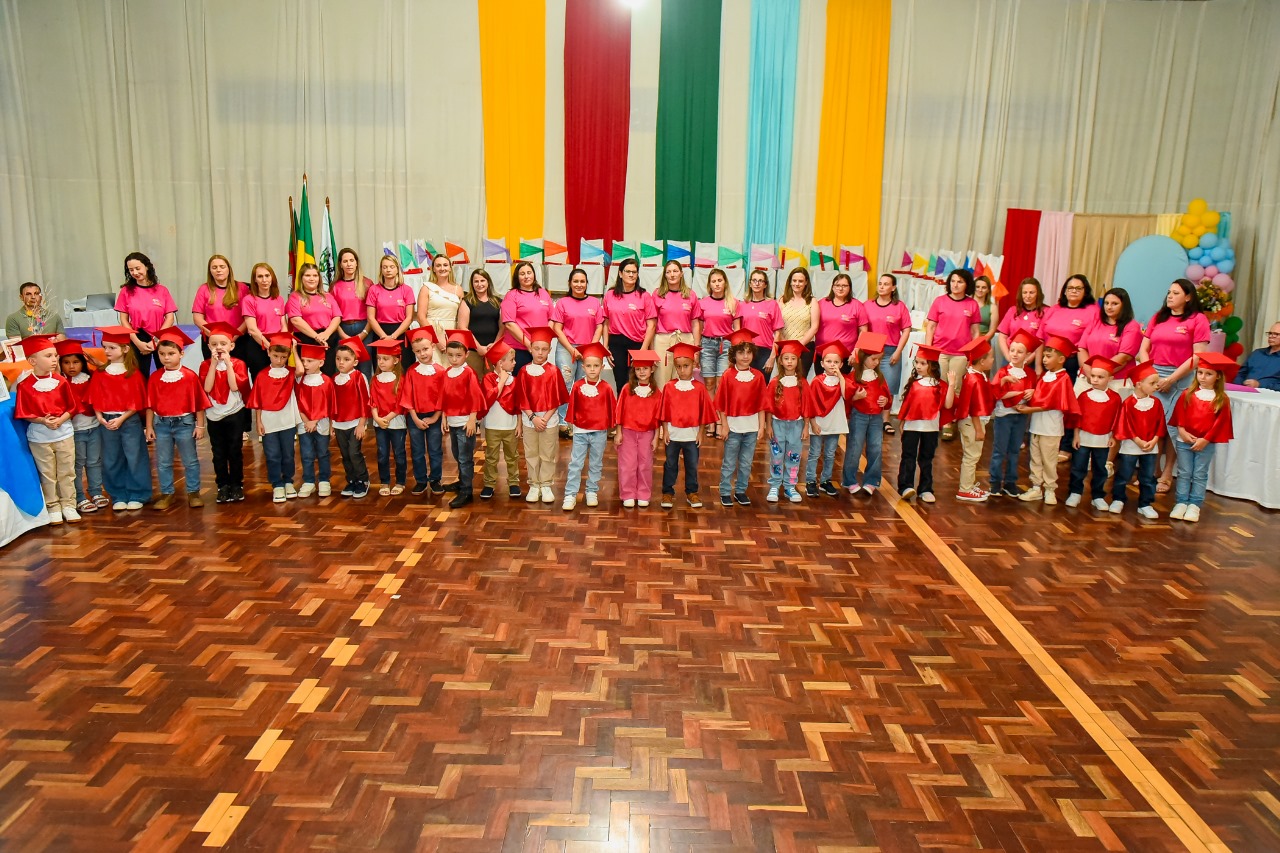 Além deles, a comunidades escolar também se fez presente, assim como o prefeito Jair Kammler, a primeira-dama Maria Bernardete Kammler e a secretária de Educação, Cultura, Desporto e Turismo, Tanise Vendruscolo Suzin.
