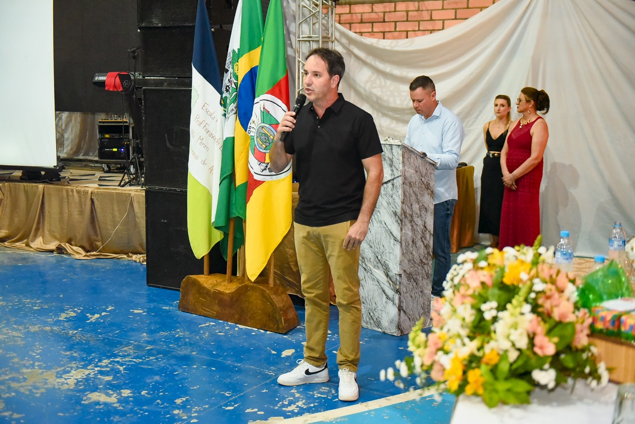 O evento, no Salão da Comunidade, reuniu a comunidade escolar, direção e professores. O prefeito, Jair Kammler, a primeira-dama e secretária de Assistência Social, Maria Bernardete Kammler, o vice-prefeito Leonel Dario Lanius Junior e a esposa Alissia, a secretária de Educação, Cultura, Desporto e Turismo, Tanise Vendruscolo Suzin também estiveram presentes.
