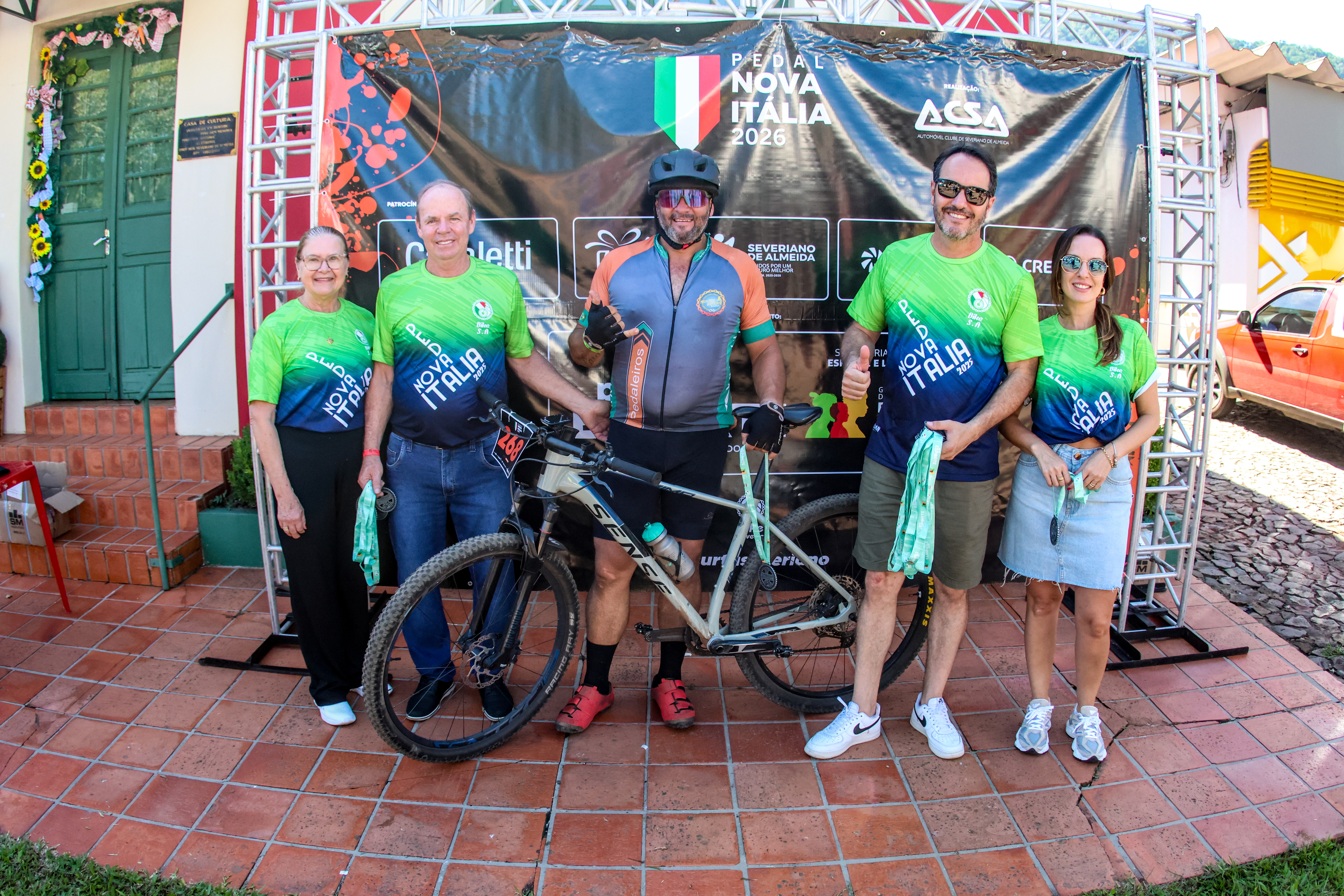 O projeto Pedal Nova Itália 2026 tem o apoio da Prefeitura Municipal de Severiano de Almeida, Sicredi e Cresol, patrocínio da Cavaletti Cadeiras Profissionais e MF Embalagens, com financiamento pela Lei de Incentivo ao Esporte – Pró Esporte RS.