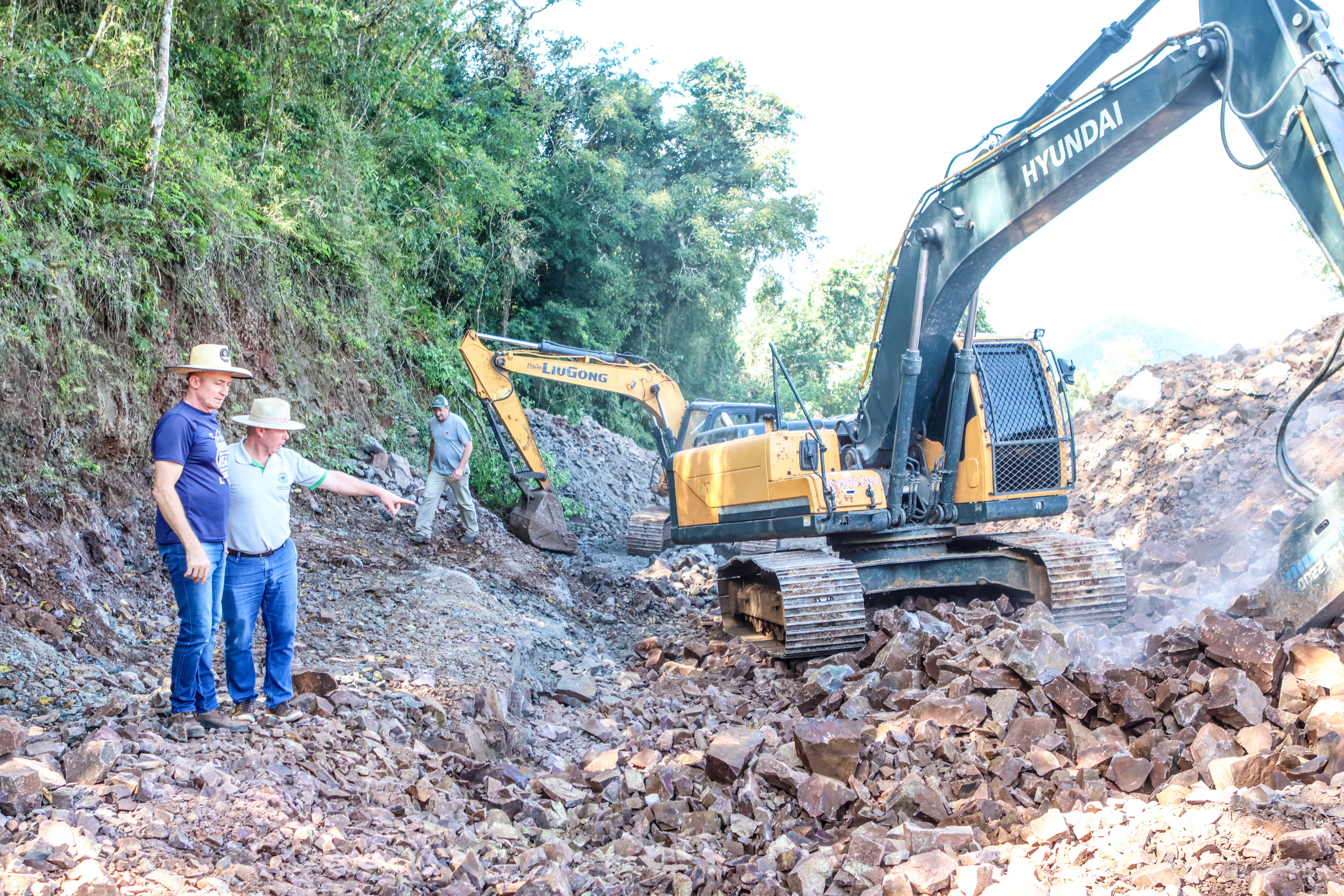 Nesta quarta-feira, 22, o prefeito, Jair Kammler e o secretário de Obras, Dilei Anzolin estiveram no trecho em obras, para acompanhar os trabalhos.