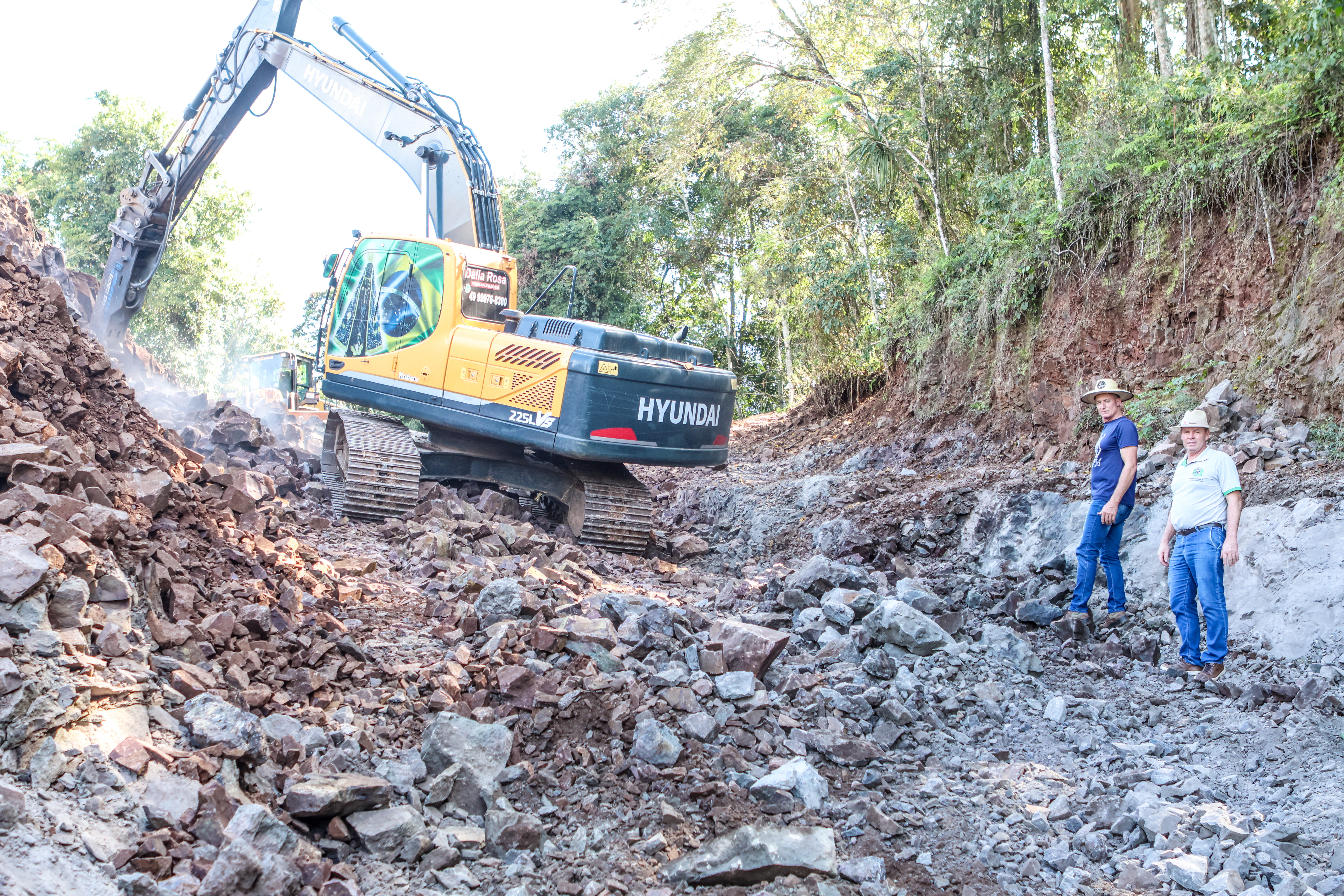 No local está sendo realizada importante trabalho de rompimento de rochas, o que vai melhorar consideravelmente o trânsito de veículos no local.